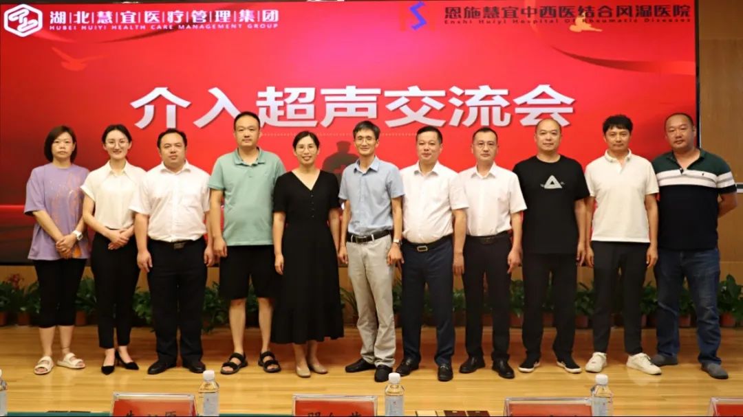 南开大学翟红燕博士、朱心愿博士,恩施市人社局副局长张家斌,恩施州知名超声领域专家胡亚飞,陈功泉,涂昊,郭婧熙,湖北慧宜医疗集团董事长杨方列、行政院长刘道远,恩施慧宜中西医结合风湿医院执行院长向诗非、超声影像科主任潘宇参加博士后科技服务基层湖北恩施行之介入超声交流会。
